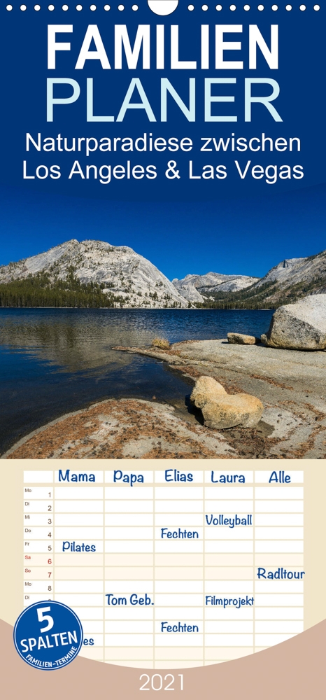 Format , 21 cm x 45 cm, Familienplaner hoch: Naturparadiese zwischen Los Angeles und Las Vegas – Familienplaner hoch (Wandkalender 2022 , 21 cm x 45 cm, hoch) / 978-3-675-09873-2