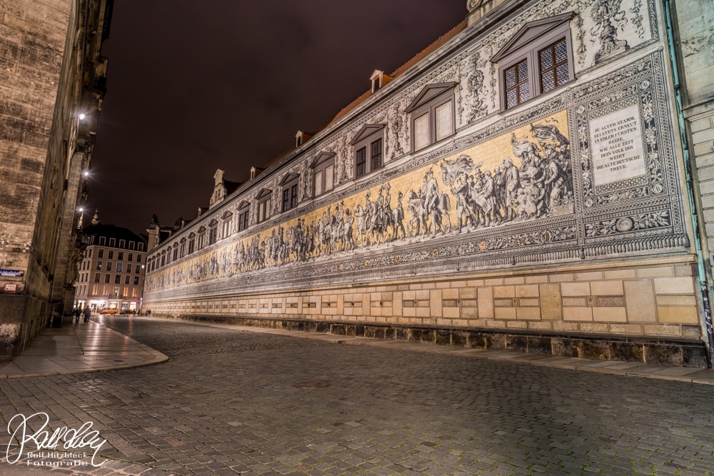 Auf dem Rückweg vorbei an der großen Flieseninstallation (Fürstenzug, goldenes Flies)