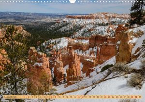 Dieser Kalender fängt die Magie des Bryce Canyon im Winter ein – von schneebedeckten Hoodoos über funkelnde Eiskristalle bis hin zu stimmungsvollen Sonnenaufgängen, die die weiße Landschaft in ein goldenes Licht tauchen. Jeder Monat zeigt eine neue, faszinierende Perspektive dieses unvergleichlichen Naturphänomens.