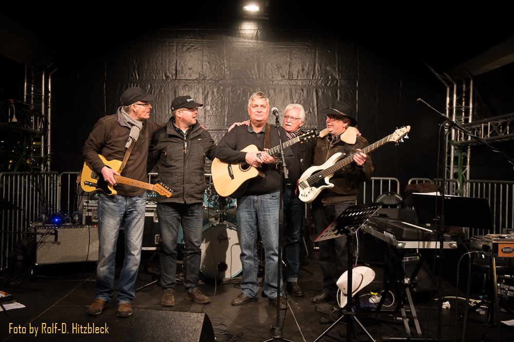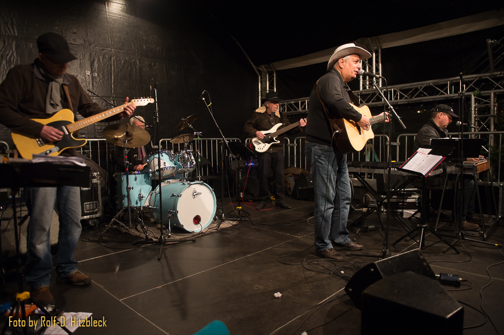 Angefangen hatte es bei einem Konzert von Johnny Cash Experience in Wuppertal, als der Pedal Steel Player Mark Busskönning ein Gastspiel gab. Diesmal war er mit seiner Stammband, den Old Country Folks, in Brühl auf dem Weihnachtsmarkt unterwegs. Fahren wir also hin. Für gute Country Musik lohnt sich das immer. Die Band macht ihrem Name Ehre. Alle haben die 30 Lebensjahre zart überschritten, sie sind halt schon länger jung als andere. Aber die Erfahrung und die Liebe zur Country Musik ist das Resultat, was deutlich hörbar bei den Zuschauern ankommt.