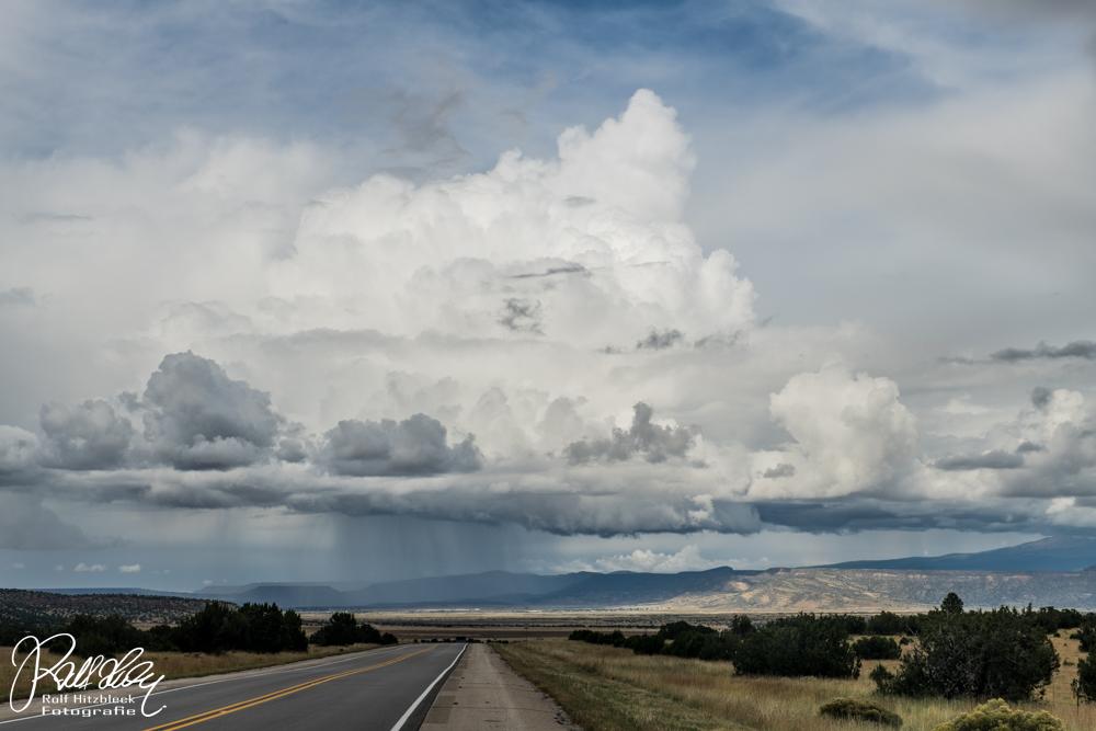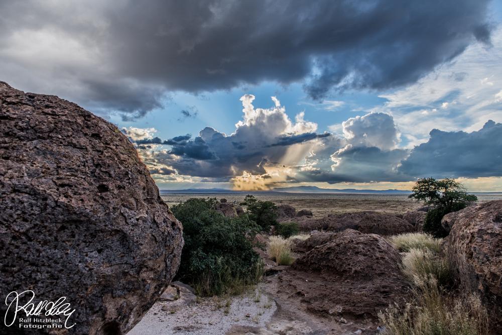 Rechts daneben geht gerade ein Regenguss runter, angestrahlt für den Fotografen.