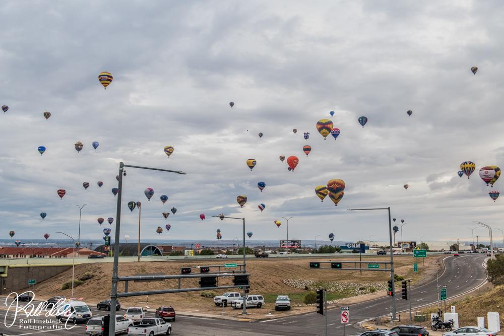 Aber schauen wir erstmal aus dem Fenster. Der Parkplatz vor uns ist trocken, es hat über Nacht nicht geregnet. Die Chancen stehen gut, dass wir etwas von der Balloon Fiesta (in Deutschland wird immer vom Ballon Festival geredet) mitbekommen.
