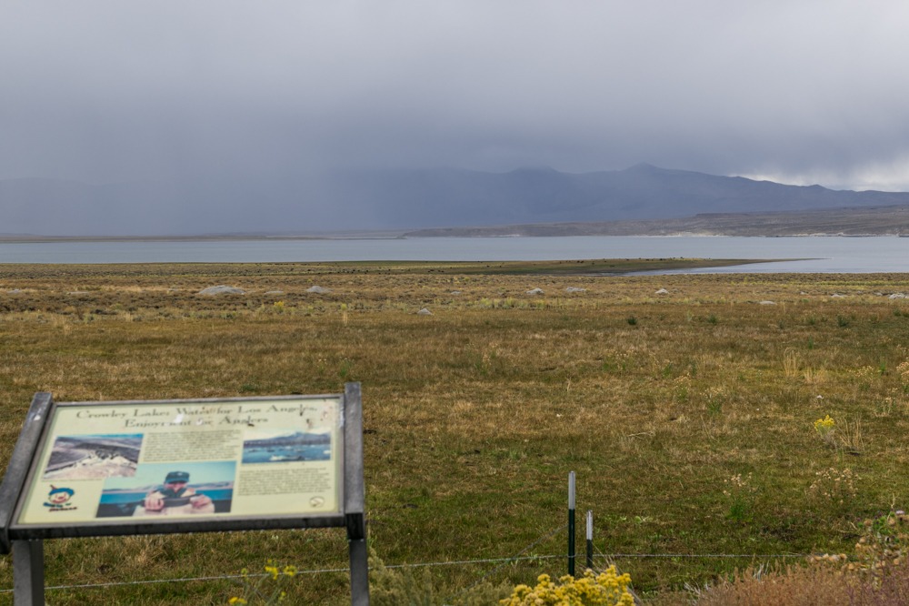 Dann stellen wir den Tempomat auf die erlaubten 65 Meilen ein und lassen uns bis Lee Vining tragen. Und immer, wenn wir diesen Namen zum Beispiel auf einem Straßenschild sehen, kommt uns die Aussprache einer Stuttgarterin in den Sinn, sie sprach es Lewining aus. Liegt wohl daran, dass im Schwabenland viele Städte mit „ingen“ enden. Ingen-Land halt.