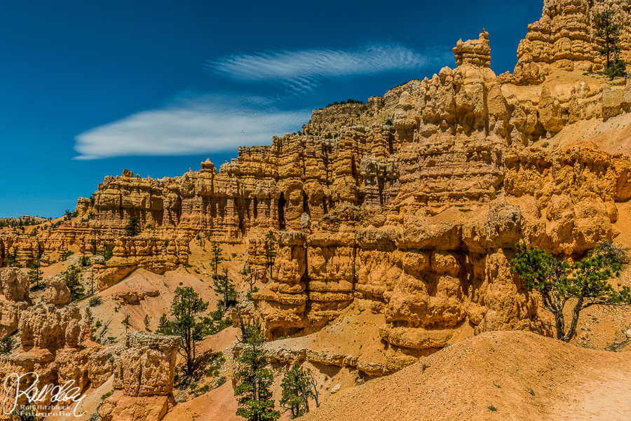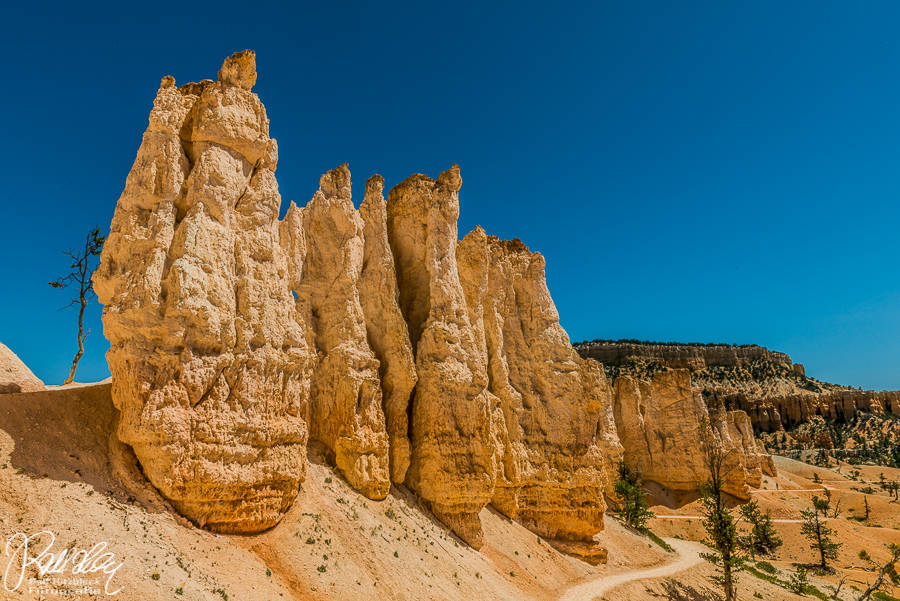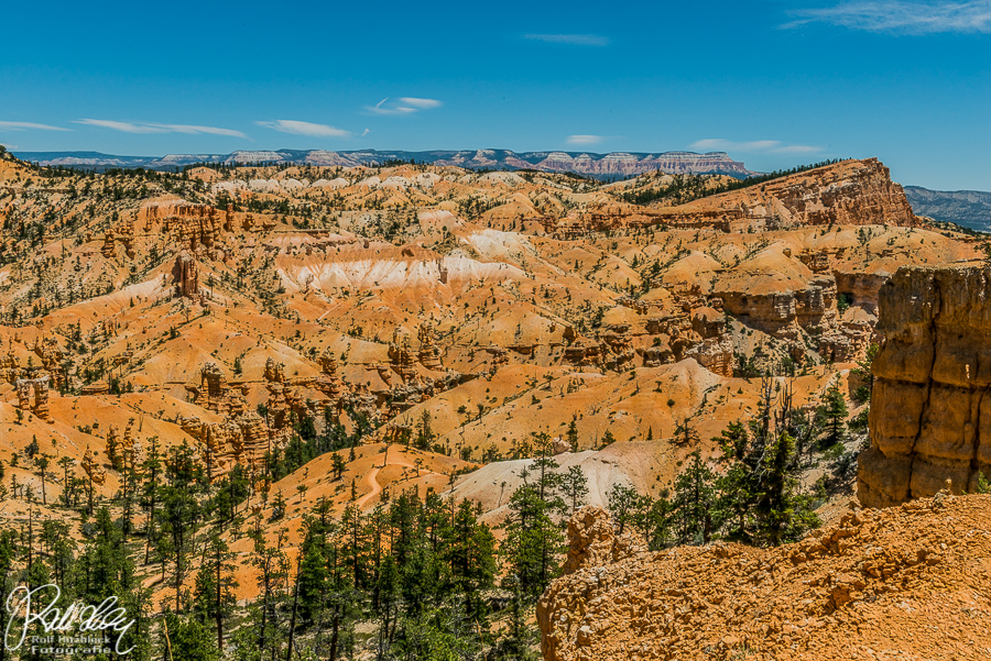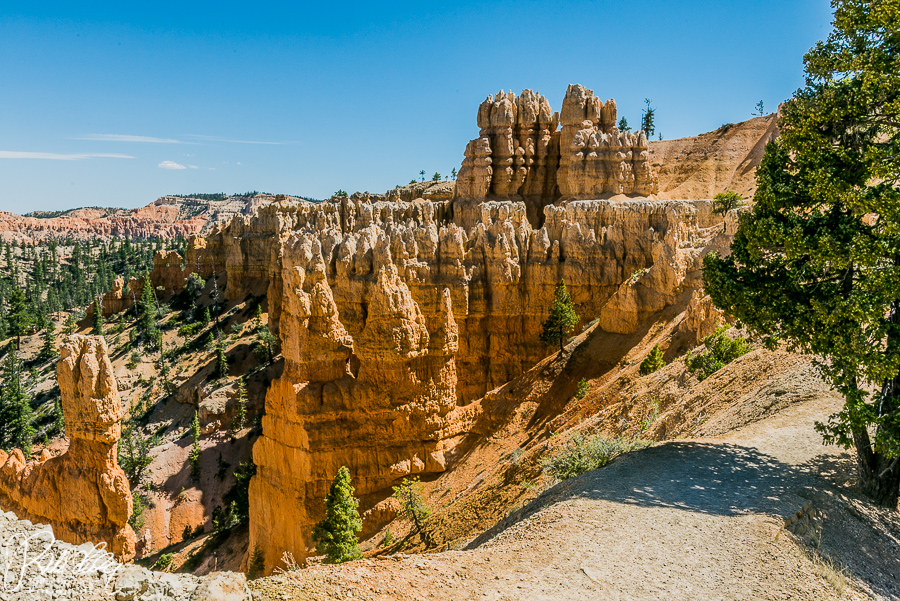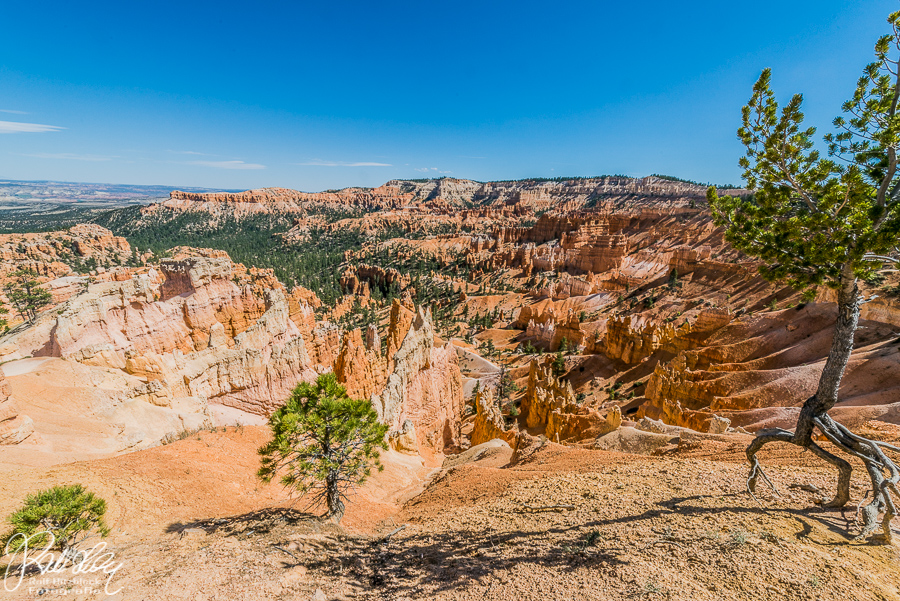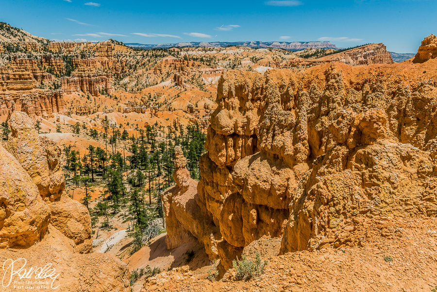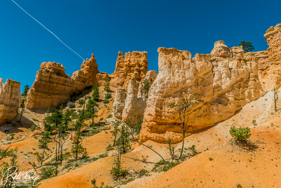 Wer uns kennt, weiß, dass wir den Bryce Canyon nicht einmal, nicht zwei  Mal, nicht drei Mal, sondern schon wesentlich öfter besucht haben. Zuerst als kinderloses Ehepaar, dann mit meinen Eltern (bei denen er einen mehr als bleibenden Eindruck hinterlassen hat) und anschließend mit den Kids. Und man sollte meinen, wenn man einmal einen der Piddel (im Fachjargon Hoodoo genannt) gesehen und vielleicht sogar fotografiert hat, dann hat man alle gesehen und weitergehende Fotografiererei erübrigt sich. Aber vorsichtshalber und mehr aus Gewohnheit hatte ich die Ausrüstung doch mal mitgenommen. Fühlt sich sonst so leer und leicht am Rücken an und dann würde ich meiner Mithikerin vielleicht noch weglaufen.