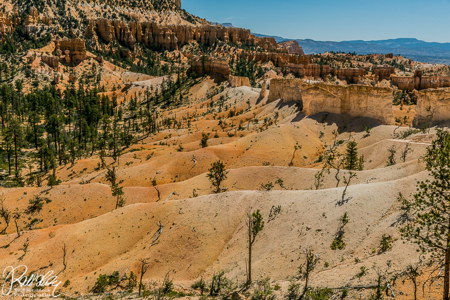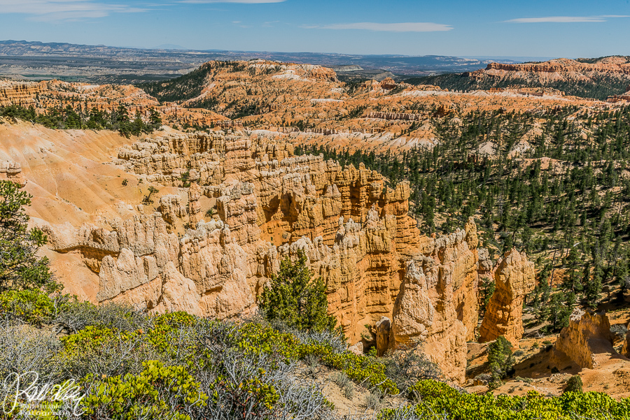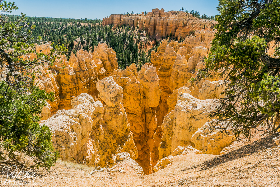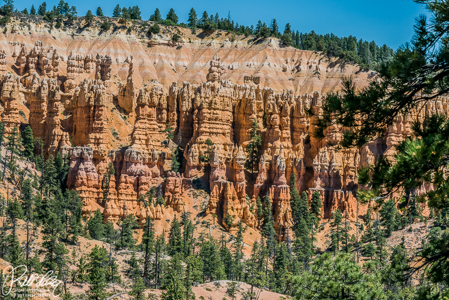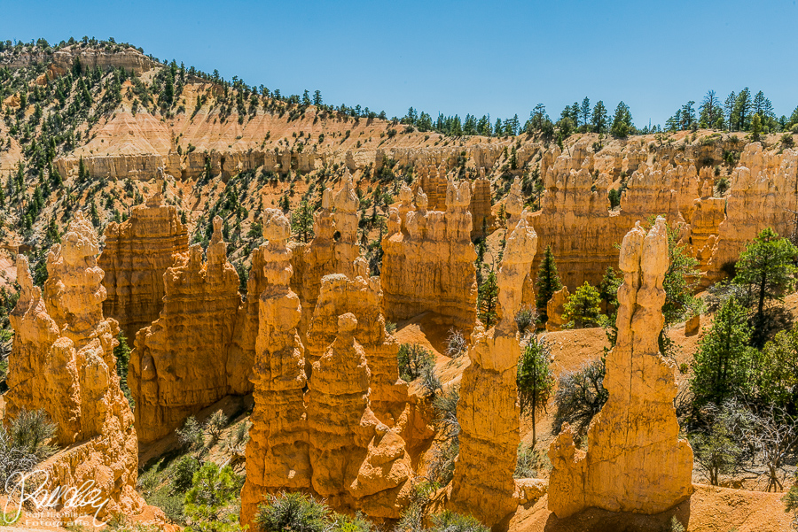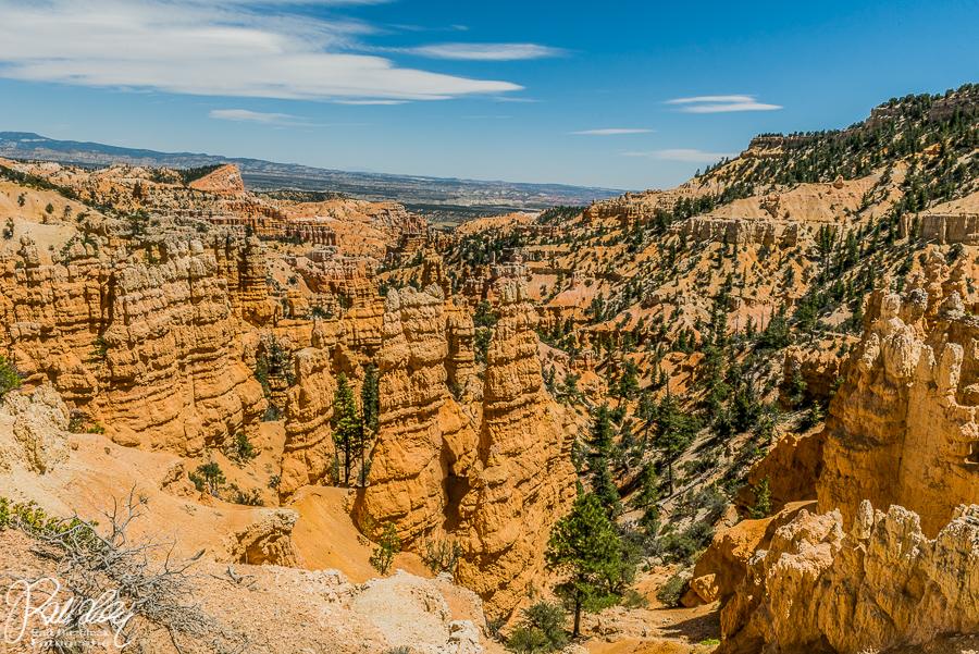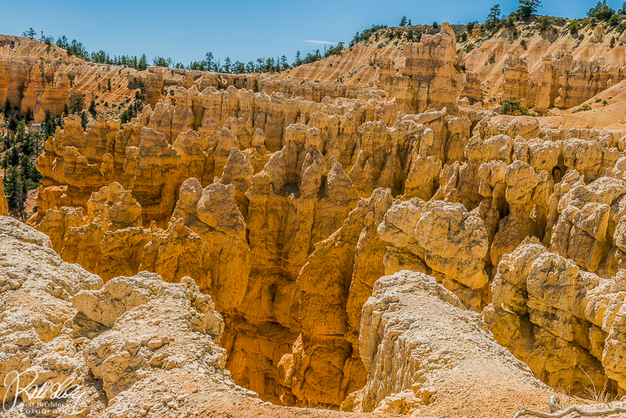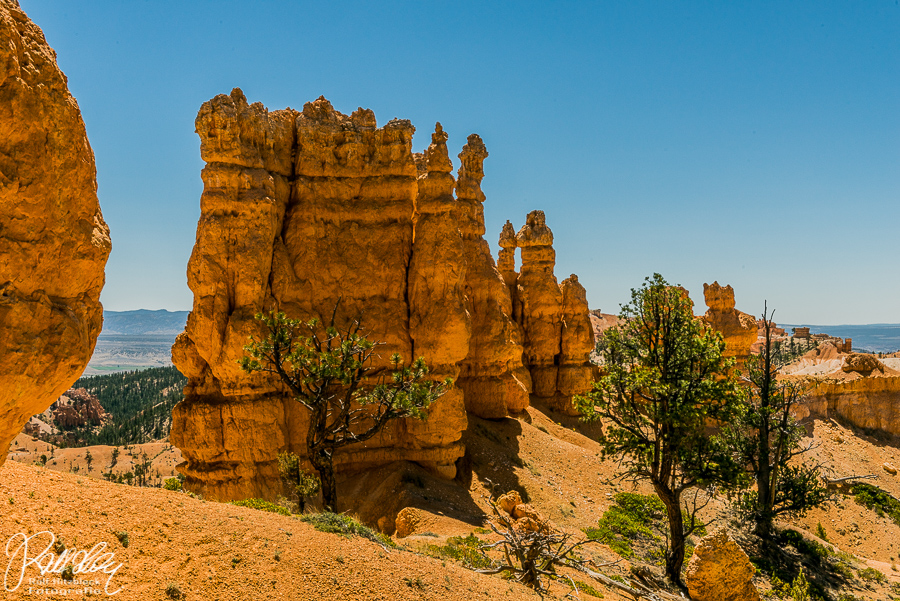 Wer uns kennt, weiß, dass wir den Bryce Canyon nicht einmal, nicht zwei  Mal, nicht drei Mal, sondern schon wesentlich öfter besucht haben. Zuerst als kinderloses Ehepaar, dann mit meinen Eltern (bei denen er einen mehr als bleibenden Eindruck hinterlassen hat) und anschließend mit den Kids. Und man sollte meinen, wenn man einmal einen der Piddel (im Fachjargon Hoodoo genannt) gesehen und vielleicht sogar fotografiert hat, dann hat man alle gesehen und weitergehende Fotografiererei erübrigt sich. Aber vorsichtshalber und mehr aus Gewohnheit hatte ich die Ausrüstung doch mal mitgenommen. Fühlt sich sonst so leer und leicht am Rücken an und dann würde ich meiner Mithikerin vielleicht noch weglaufen.