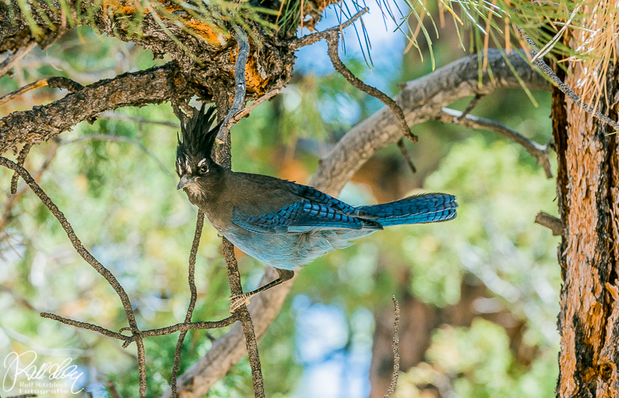 als auch ein Diademhäher (Steller’s Jay) dort niedergelassen,