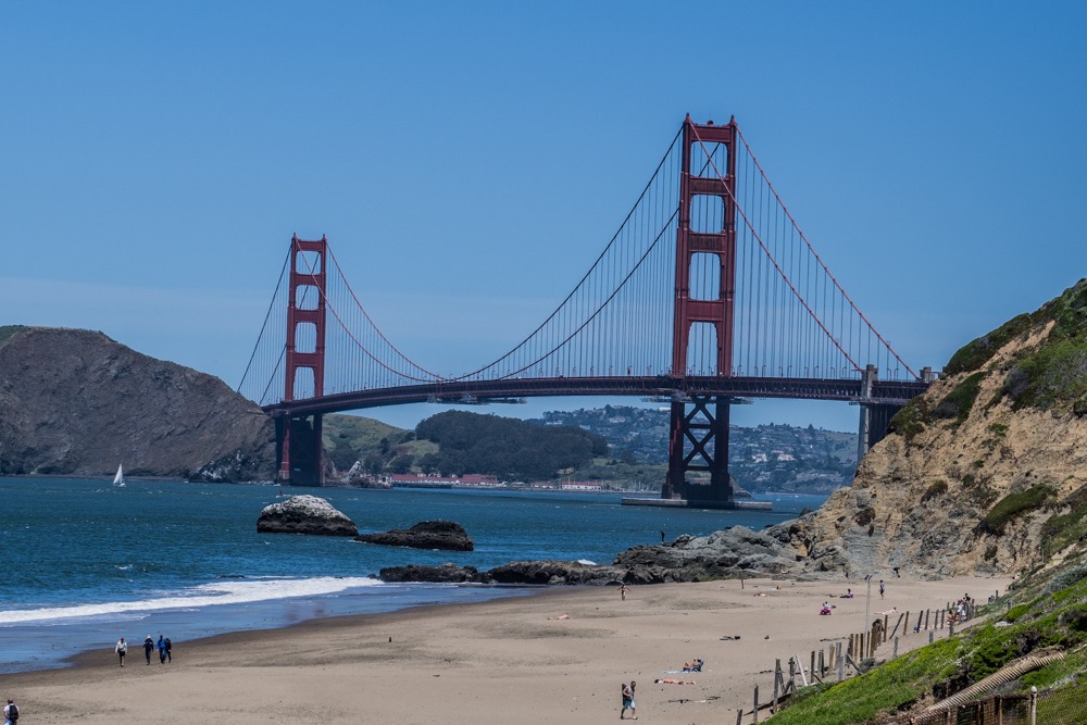Am Baker Beach selbst wie schon früher ein toller Ausblick auf die Brücke