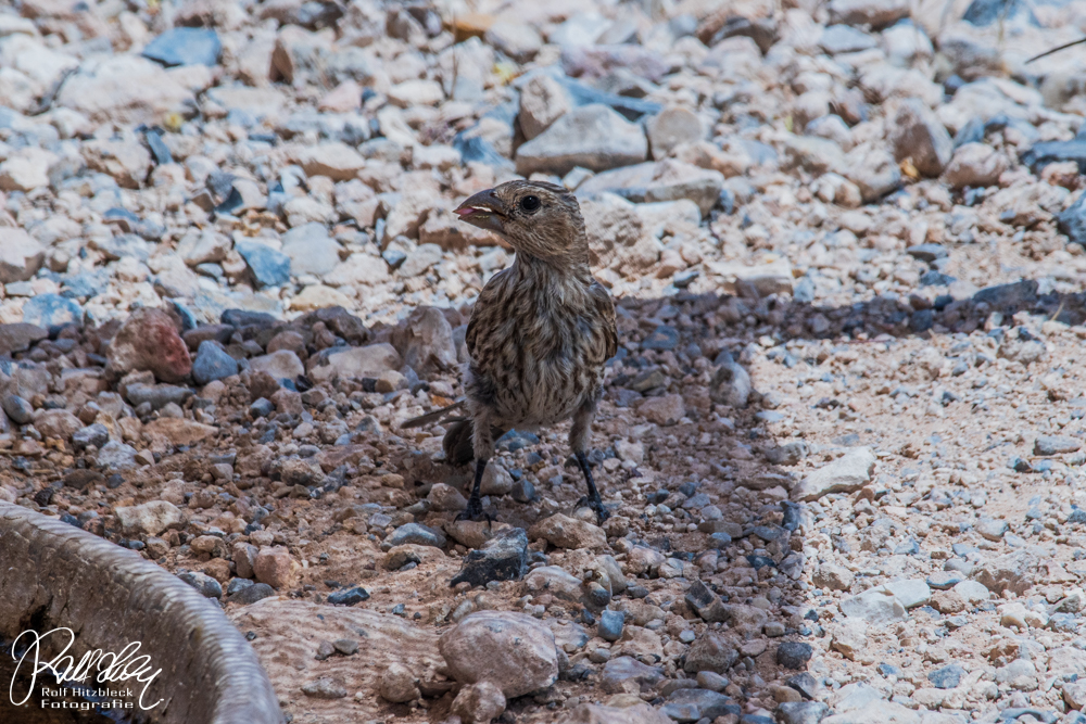 Die Kolibri-Tränken, die dort rumhingen, wurden zu meinem Leidwesen nicht besucht, dafür erwischte ich einen süßen Vogel, der mit einer Beere oder einem Kern im Schnabel an der Tränke herumhüpfte.