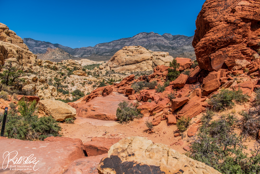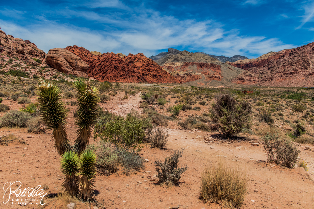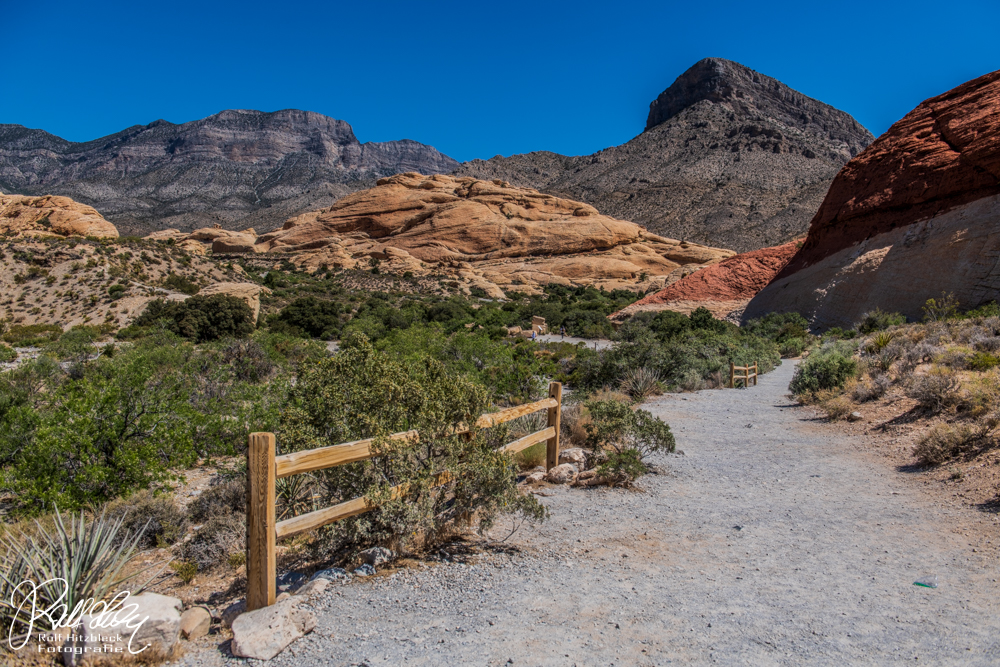 Angenehm ist es, weil durch die Nähe der Quelle – Red Spring – viele Bäume wachsen, die Schatten spenden. Und natürlich auch diverse Wüstenblumen.