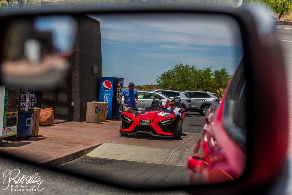 Auf der weiteren Fahrt hielten wir noch an diversen Trailheads an und trafen auch unsere Freunde von den Pink Jeep Tours wieder. Kaum hatte ich eine Frage gestellt, verfiel einer von ihnen direkt in den Tourguide-Modus und ratterte alle möglichen Informationen zur Historie und Geologie der Gegend runter. Und das, ohne dass wir eine Tour gebucht hatten!! Noch eine kurze Frage zum Auto: Also, das ist ein Dodge Ram 3500, als Aufsatz ist eine Kabine, die von Learjet gebaut wird, auch mit Learjet-Sitzen. Und vorne am Kühler prangt ein Grill der Firma Jeep, extra lizensiert, vermutlich, damit sie das unter Pink JEEP Tours verkaufen können. Die Firma war uns schon des öfteren aufgefallen, in Sedona, am Grand Canyon und auch in Moab. Aber wir erkunden lieber selbständig das Land und die Leute.
