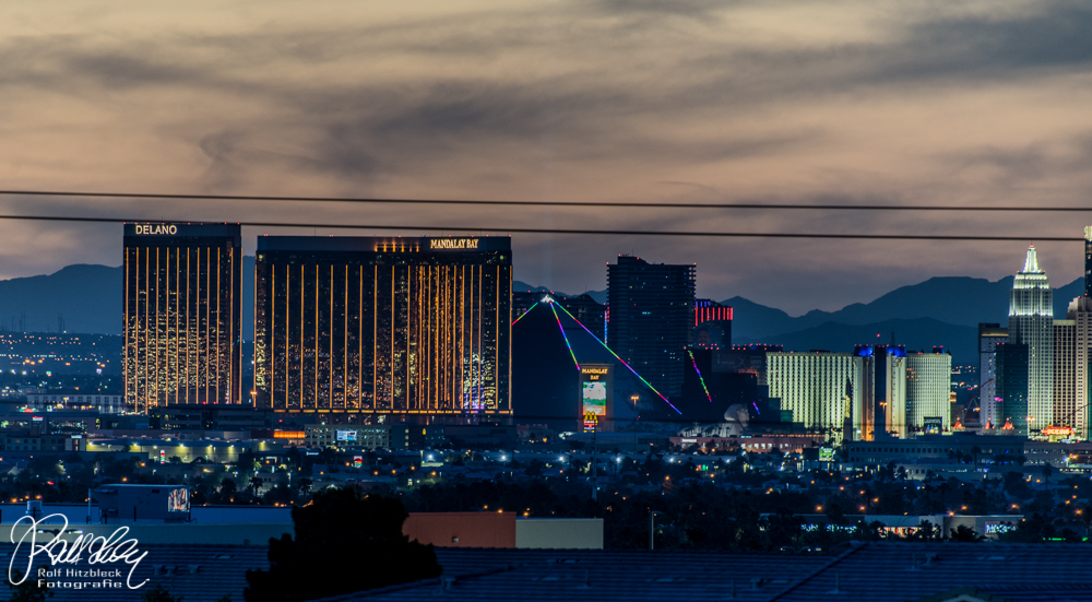 Anschließend rangezoomt der südliche Teil mit dem Luxor und Mandala Bay,