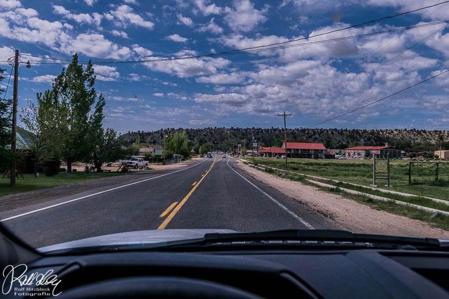 Jetzt geht es auf nach Hanksville. Die Strecke im Nationalpark lässt einen Blick in die weißen Felsen offen, anschließend wird es deutlich langweiliger.