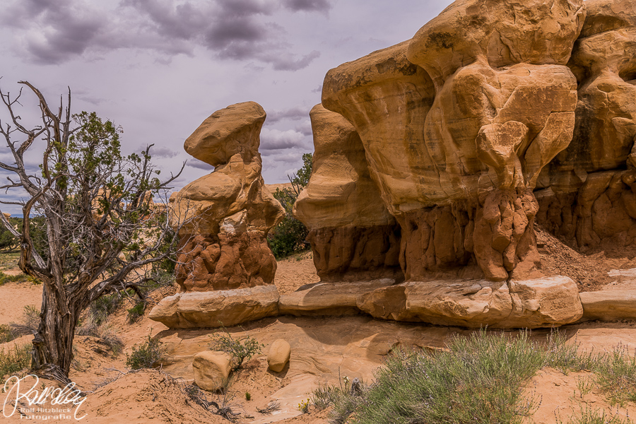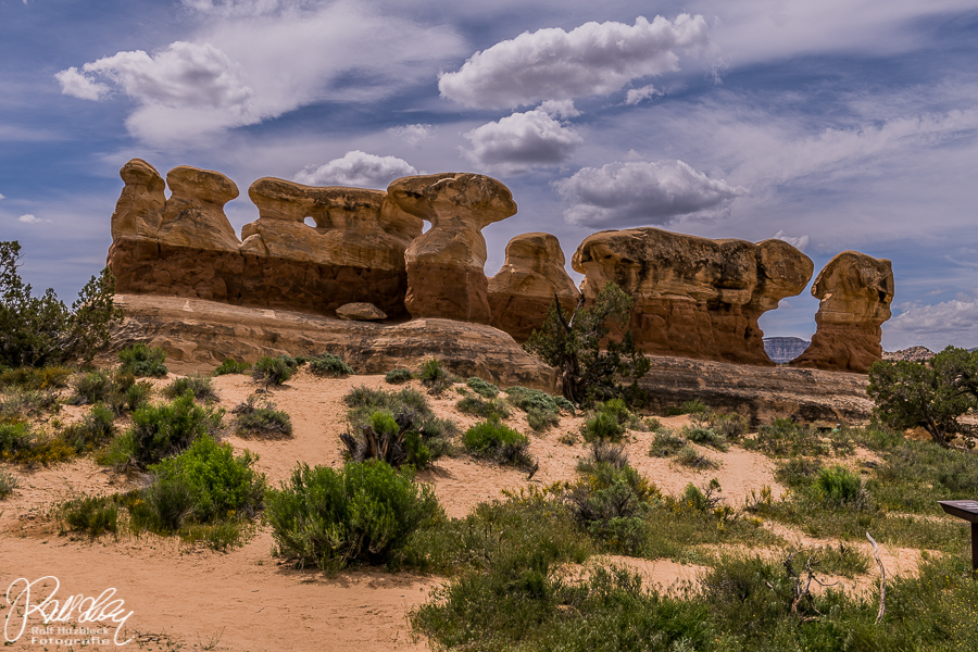 Die Natur hat dort in die flache Ebene ein Naturschauspiel besonderer Güte hingesetzt. Türmchen und Zinnen, Hoodoos, Bögen und Arches, alles zum leichten Durchwandern.