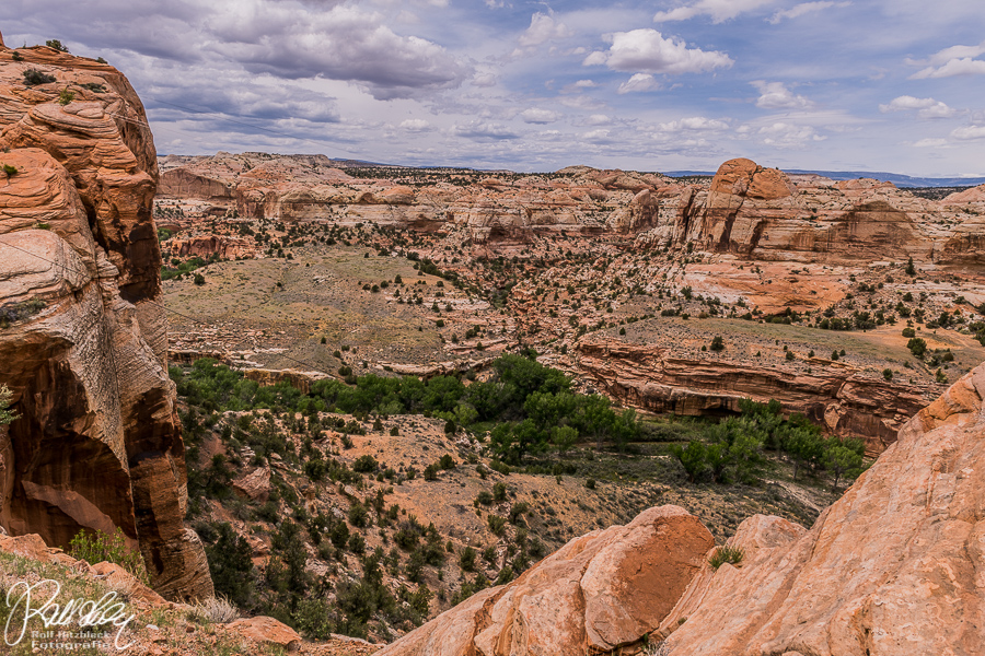 Auch der Blick zu der Stelle, wo die Calf Creek Falls liegen, war möglich. Und mit dem Auto ist es ungleich leichter von oben draufzuschauen, als sich in stundenlanger Arbeit durch den heißen und tiefen Sand dorthin zu kämpfen.