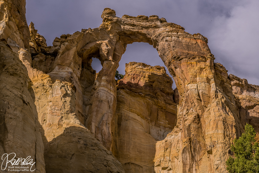 Der Nachmittag kündigte sich an und wir wollten auf dem Rückweg noch den Kodachrome Basin State Park mitnehmen. Aber als wir an der Abzweigung zur CCR = Cottonwood Canyon Road standen, beschlossen wir ganz abrupt, meine Mutter mit etwas imposanterem zu überraschen. Da sie ja mittlerweile auf Backcountry Roads abgehärtet war, hielt sich das Gequietsche auf dem Rücksitz in Grenzen. Auch ihre erste Flussdurchfahrt überstand sie ohne Schäden (ok, das Wasser war nur 10cm tief).