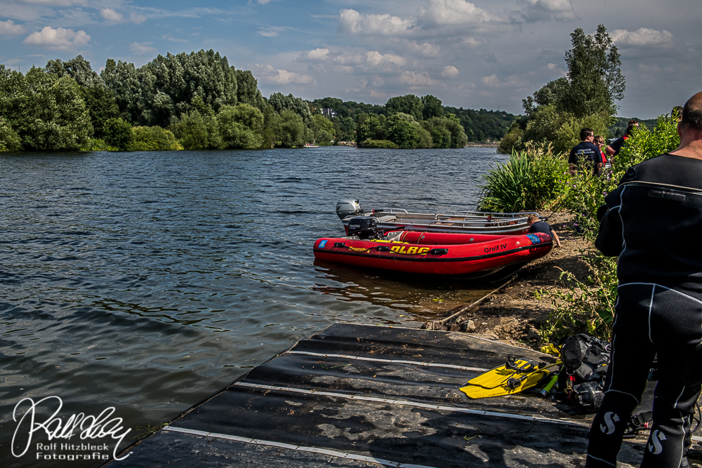 Die DLRG stellte die Schlauchboote zur Verfügung, um die Taucher flussaufwärts ins Wasser zu lassen und sie am unteren Ende der Strecke wieder einzusammeln. Pro Taucher gab es immer nur einen Tauchgang. Dafür hatten sich immerhin 38 Unterwasserschwimmer eingefunden.
