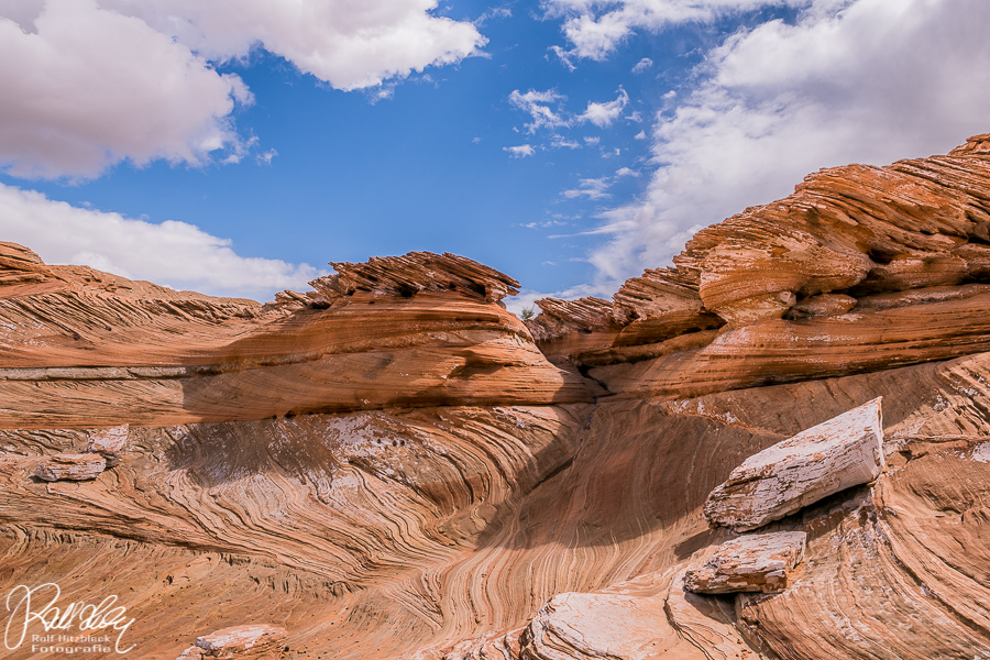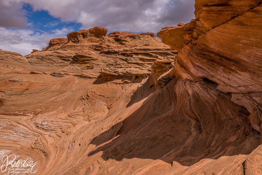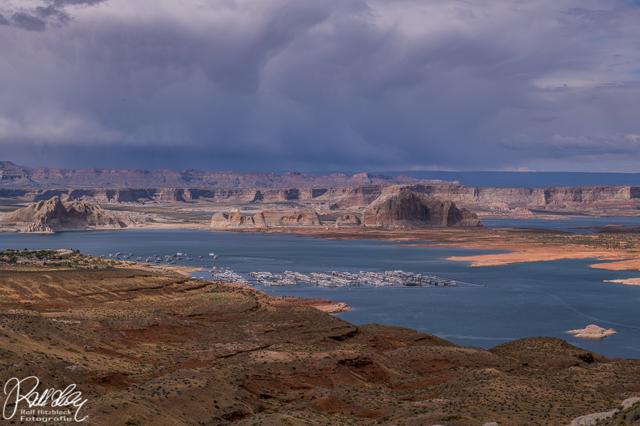 Ein paar Meilen später enterten wir Page. Dieses Nest ist mittlerweile riesig geworden. Ich war auf dem Weg zum Visitor-Center einmal falsch abgeboten und wir durchfuhren die Werft-Straße. Richtig gelesen. An dieser Straße werden hunderte von Booten und Hausbooten geparkt, repariert und gebaut. Man kommt sich fast vor wie in Bremerhaven.