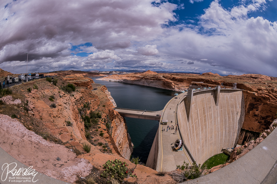 Andere Deutsche, die wir bei Lees Ferry getroffen hatten, hatten uns gewarnt, man dürfe keine Taschen oder irgendwas mit hinein nehmen. Das konnte ich mir nicht vorstellen und so war es auch nicht. Wenn man den Staudamm von innen besichtigen möchte, kann das passen, zumindest sind dort aber auch noch Kameras erlaubt.