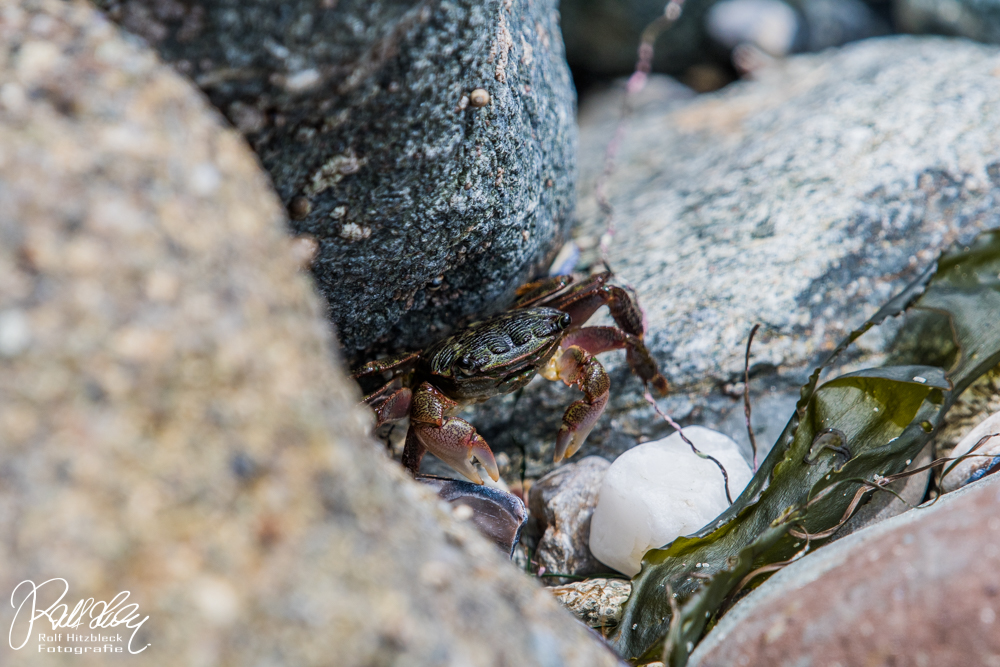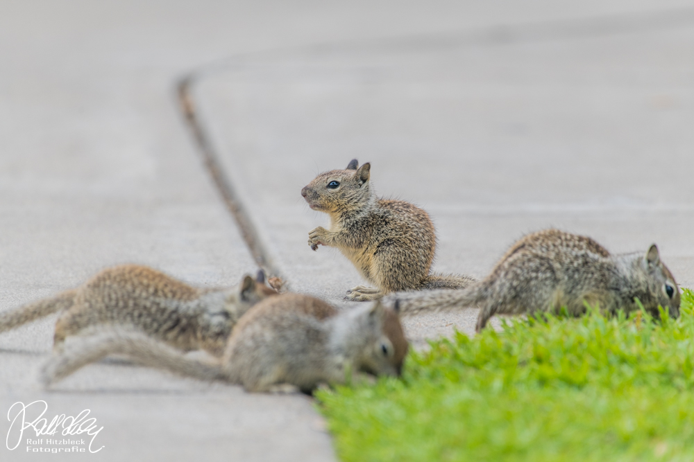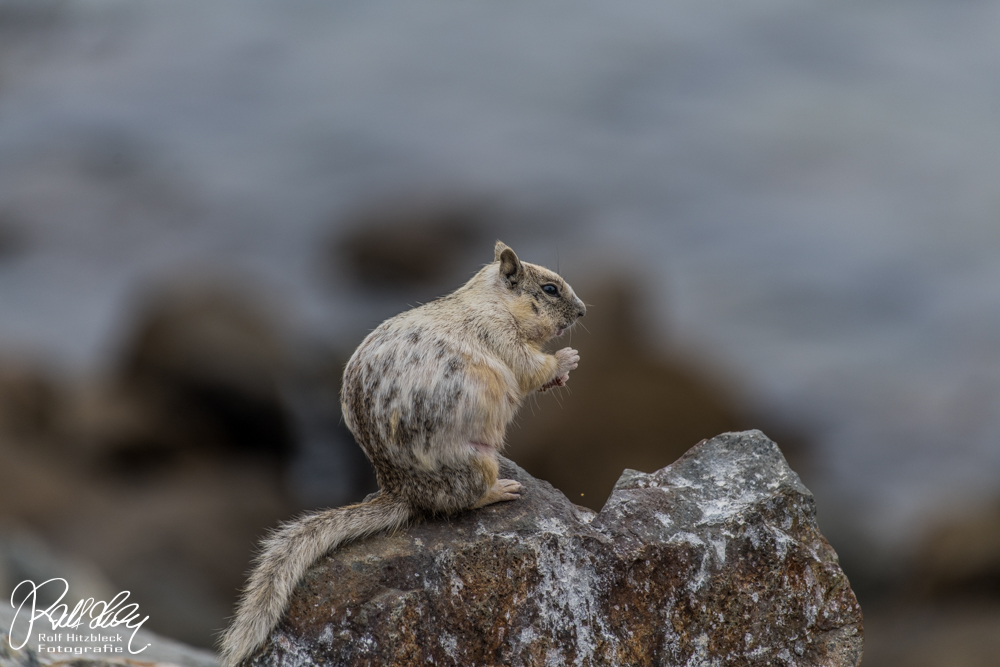 Gegenüber die Mole mit weiß bekoteten Möwenfelsen. Und dann die Sichtung des Tages. Mehrere weiße Squirrels turnten zwischen den Felsen rum. Eine Laune der Natur? Oder hatten die sich unvorsichtigerweise in der Nähe der weißen Felsen rumgetrieben?