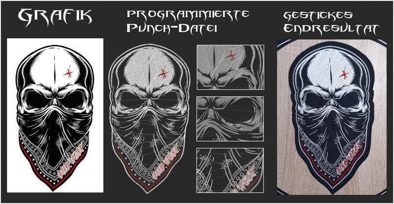 Das Punchen bzw. die Programmierung einer Steuerungsdatei (auch Punch-Datei genannt) ist eine ständige Notwendigkeit, ob Direkteinstickung oder Aufnäher. Ohne programmierte Punch-Datei geht nichts, da die Maschine ohne diese nicht verfahren kann.