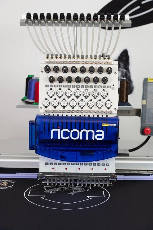 Der Stickkopf meiner Ricoma Maschine hat zwar 15 Nadeln, also 15 mal den so genannten Oberfaden, unter der Stichplatte jedoch gibt es nur einen Unterfaden der für alle Oberfäden zuständig ist.