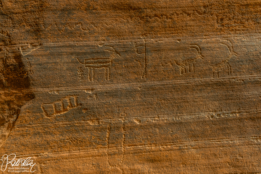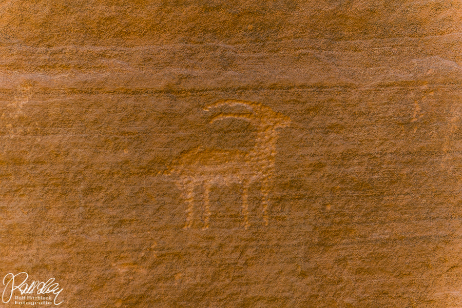 Nachdem wir den ersten Teil durchlaufen hatten (es war auch angenehm kühl da drinnen), weitete sich das Tal zum Zusammenfluss des Paria River und des Buckskin. Nach rechts ging der Buckskin weiter, an den Wänden gesäumt von Rockart (ich nenne es immer noch Indian Graffitti).