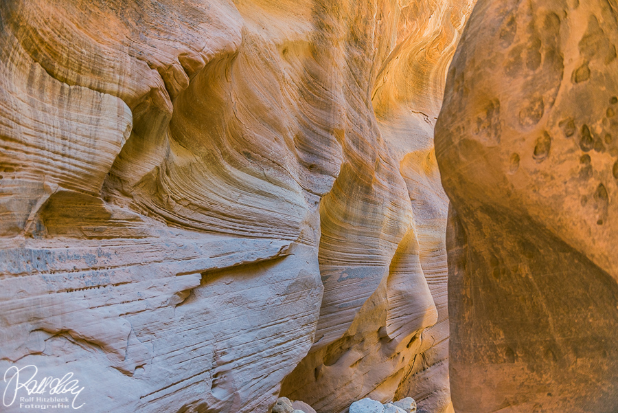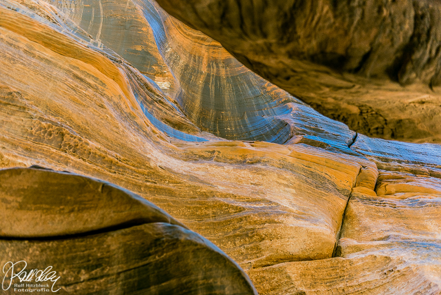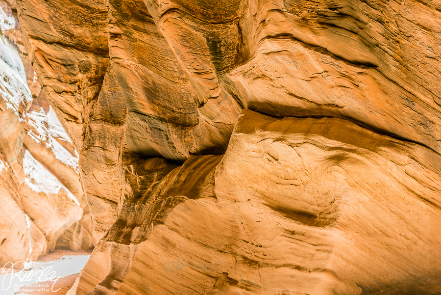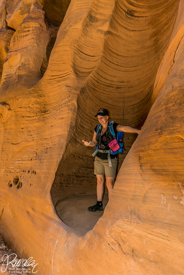 Die Felswände sind zum Teil schön abgeschliffen, es geht auch durch eine „Narrows“ durch.