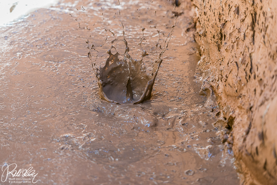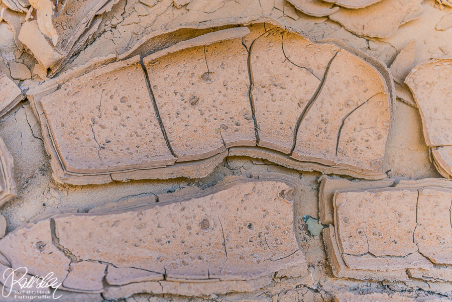 An den Rändern getrockneter Schlamm, Zeitzeuge für die Wassermassen, die zuweilen durch diese enge Schlucht schießen.