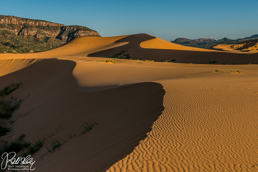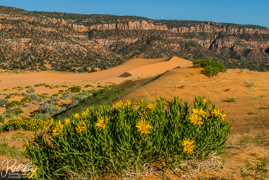Diese liegen ca. 17 Meilen von Kanab entfernt. Auch zu diesen hatten wir sehr viel früher schon einmal Kontakt. Mit dem Wohnmobil und den Kindern hatten wir in dieser Gegend übernachtet. Damals schickten wir die Kids dick angezogen auf die zum Teil mit Schnee bedeckten Dünen.