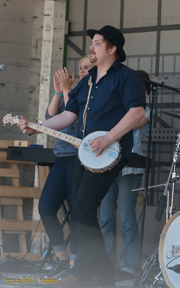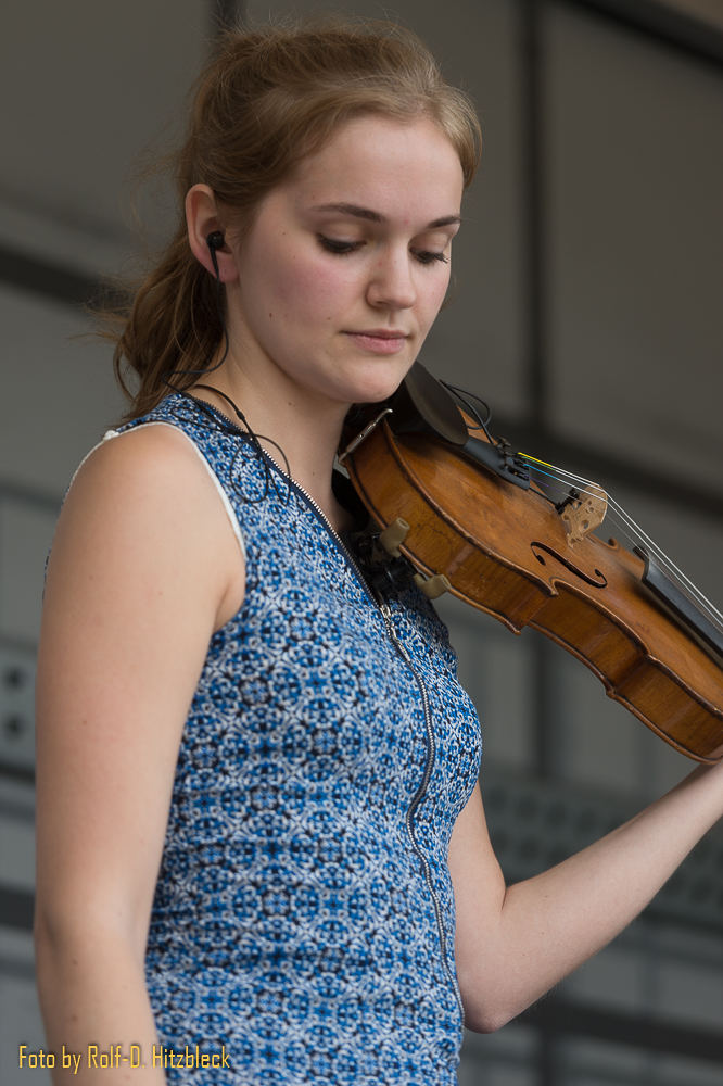 Als ich ankam, standen die beiden Damen gerade vor dem Eingang, in einen fröhlichen Plausch vertieft. Wer verbirgt sich hinter diesem französischen Namen? Nun, da hätten wir auf der einen Seite die dunkelhaarige zierliche Julia Podolecki, bewaffnet mit Gitarre, Geige, Mundharmonika und einer Stimme, die in reziprokem Verhältnis zur ihrer Körpergröße steht.