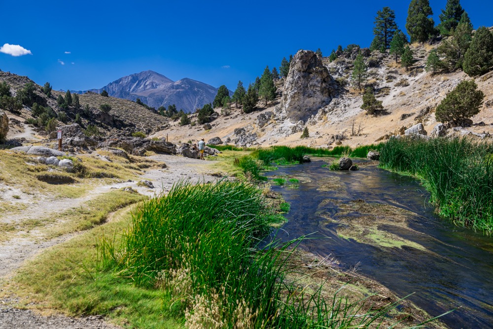 Noch haben wir Zeit, noch brauchen wir nichts zu Essen, schauen wir, was die Karten hergeben. Nicht weit nördlich vom Crowley Lake liegt der Flughafen von Mammoth. Und nördlich von ihm geht nach Osten eine Straße ab zur Hot Creek Geological Site. Vor vielen Jahren waren wir mal mit den Kids und dem Wohnmobil auf dieser Straße unterwegs gewesen. Bei schlechtem Wetter. Und außer dem Aussichtspunkt war dort alles gesperrt. Diesmal hatten wir mehr Glück.