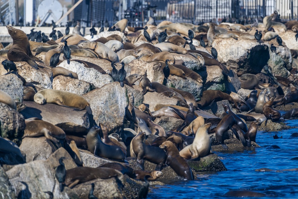 Monterey und der Sunset Drive sind schnell gefunden und wir lassen uns auf der Ladefläche nieder, um heute morgen von Costco mitgebrachten Salat zu genießen. Diesen und die Aussicht. Obwohl wir kürzlich erst zu einer ähnlichen Uhrzeit und an ähnlicher Stelle viele Walsichtungen hatten, kommt heute kein einziger vorbei. Ein Waltourboot tuckert vor der Küste entlang, die werden enttäuscht sein.
