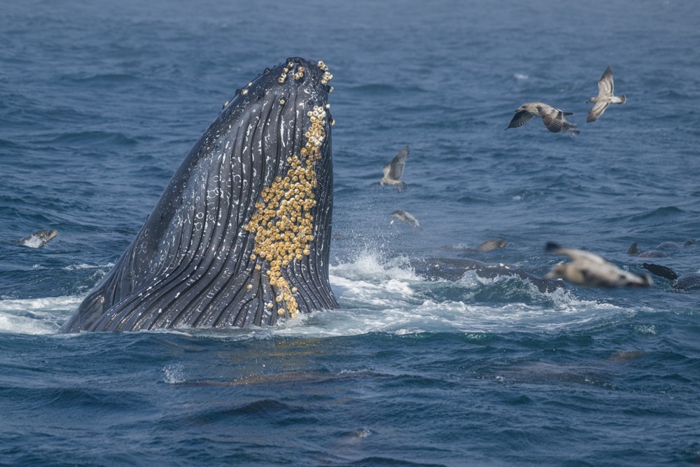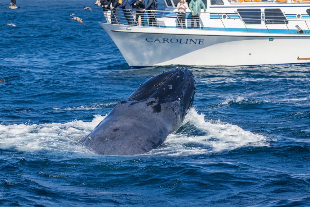 Die Wale könnten wir zwar fotografieren, aber Ihr könntet sie nicht erkennen. Daher freut es mich, ein anderes Tier in freier Wildbahn zu erwischen. Von gestern wissen wir: Es geht keine Gefahr von Schmetterlingen aus. Folglich traue ich mich nah ran.