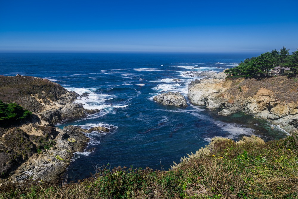 Wir lassen Carmel direkt rechts liegen und landen nach einiger Zeit am Garrapata State Park. Ein kurzer Weg führt an der Steilküste vorbei, ein anderer Abzweig geht an den Strand hinunter. Die Küste sieht man am besten von oben, daher sparen wir uns die nach unten absteigenden Treppen. Es würde uns ja auch keiner wieder rauftragen.