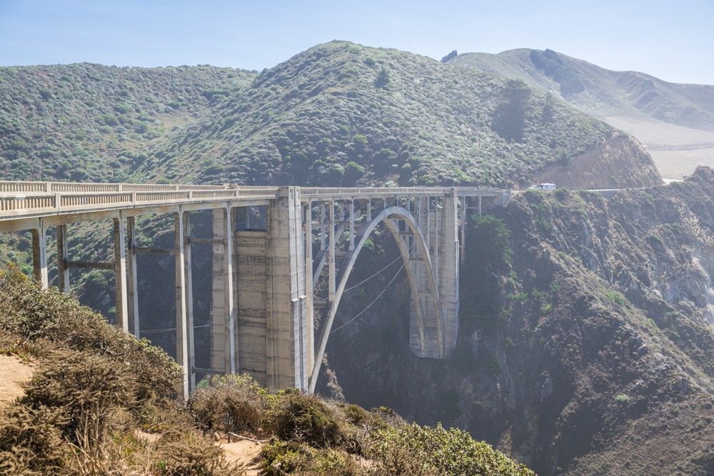 An der Rocky Creek Bridge dürfen wir die Brücke wieder einspurig befahren. Immer noch das ungute Gefühl: Was ist, wenn von dieser einen Spur auch noch was wegbricht? Während wir fahren oder bevor es zurück geht? Aber auch dieses Mal geht alles gut und wir machen unseren nächsten Stop an der Bixby Bridge. Diesmal haben wir mehr Glück und finden direkt an der „offiziellen“ Parkbucht einen Platz.