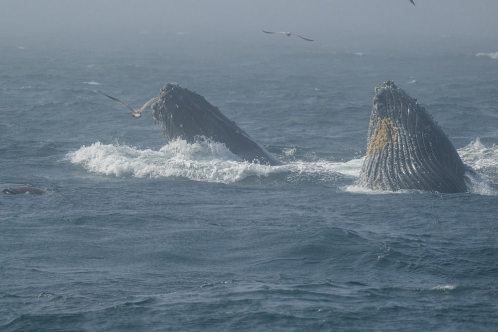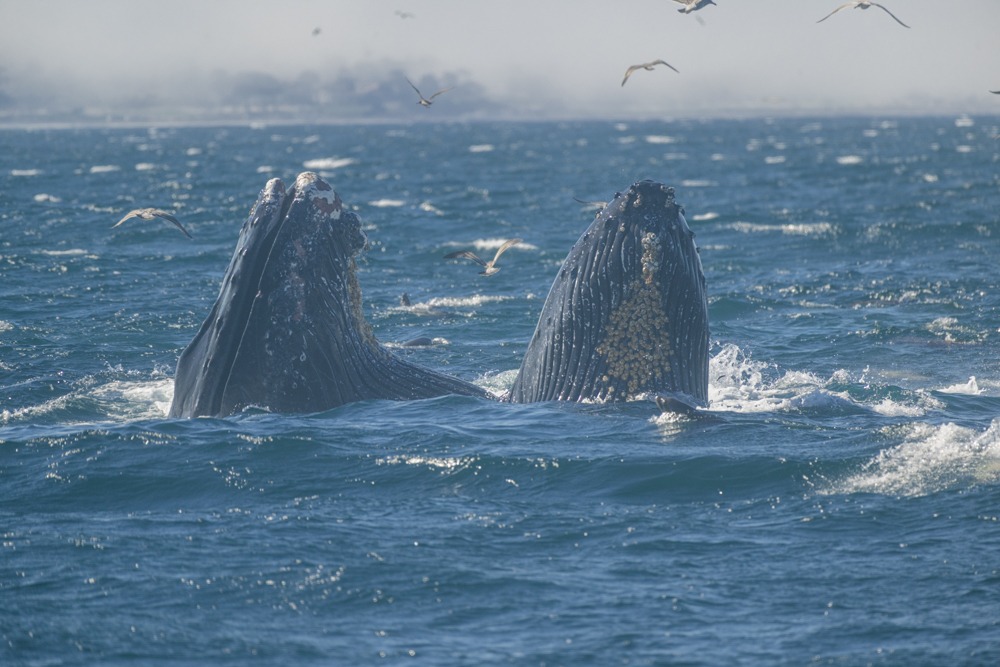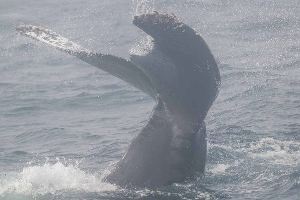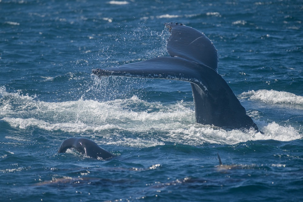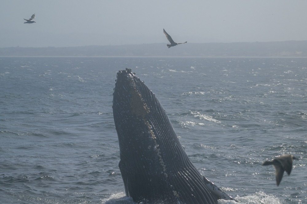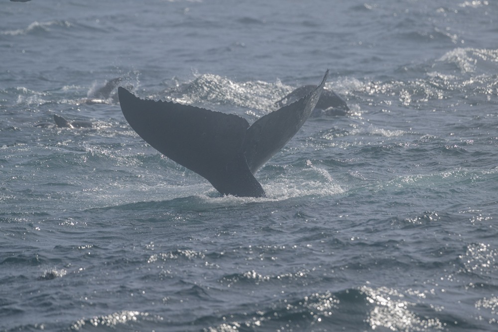 Während wir versonnen auf das Meer starren, fallen uns immer wieder an fast der gleichen Stelle Unregelmäßigkeiten auf. Wale. Man kann sie wirklich auch auf diese Entfernung noch erkennen. Anscheinend eine Mutter mit ihrem Kalb, so eng und synchronisiert, wie die Blasfontänen aus dem Wasser steigen. Es ist schon etwas anderes, Tiere im Zoo zu sehen oder sie in der freien Wildbahn zu stalken.