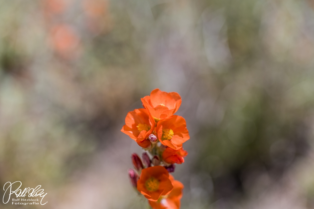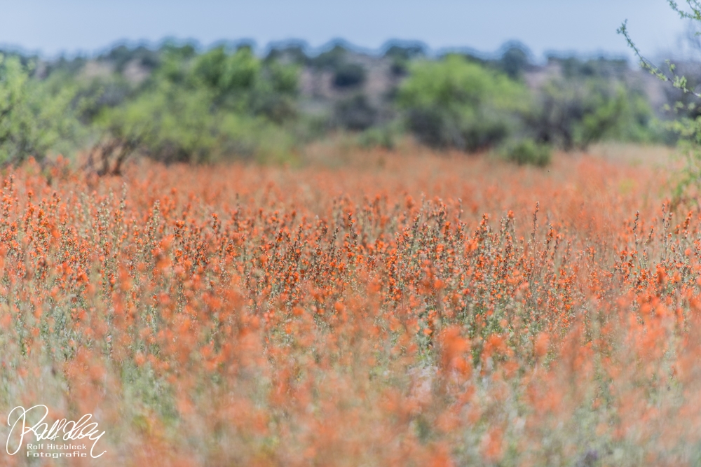 Was uns auf dem Weg ständig begegnet war, das waren die tausende kleinen orangefarbenen Blüten der Desert Globe Mellow. Hier einmal ein Blüten-Meer,