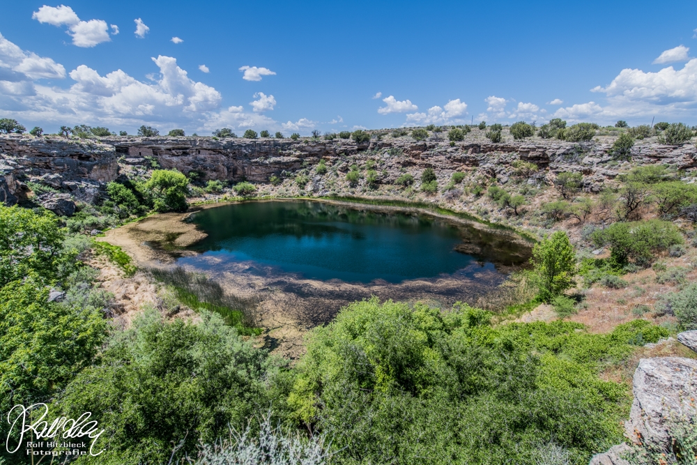 Bei Montezuma Wells handelt es sich um ein „Sinkhole“, welches unterirdisch aus einer Quelle gespeist wird. Da sich die früheren Bewohner zurückgezogen haben, ist die Quelle ein Paradies für Tiere geworden.