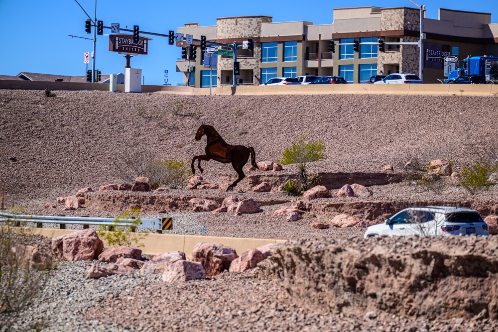 Wir machten uns also sehr zeitig auf den Weg, schon um 7.30 Uhr waren wir auf der Straße. Eingeplant war ein Tankstop in St. George, ein weiterer möglicher in Las Vegas und dann sehen wir, was unsere Blasen so melden.