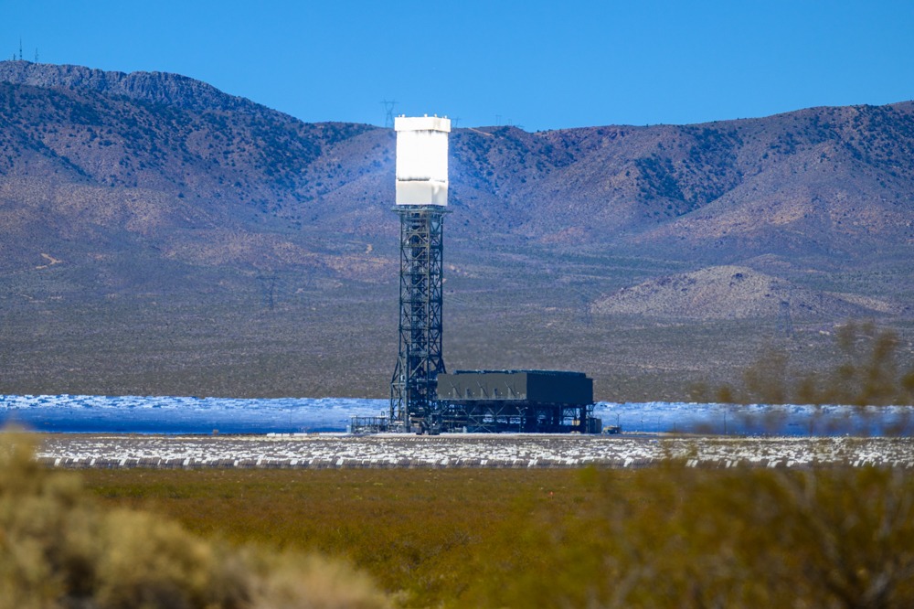 Kurz hinter der Grenze nach Californien bekommen wir noch einmal den Blick auf das Solarkraftwerk. Und da ich sowieso gerade ein Tele auf der Kamera habe, hier mal eine Detailaufnahme des Kollektors.