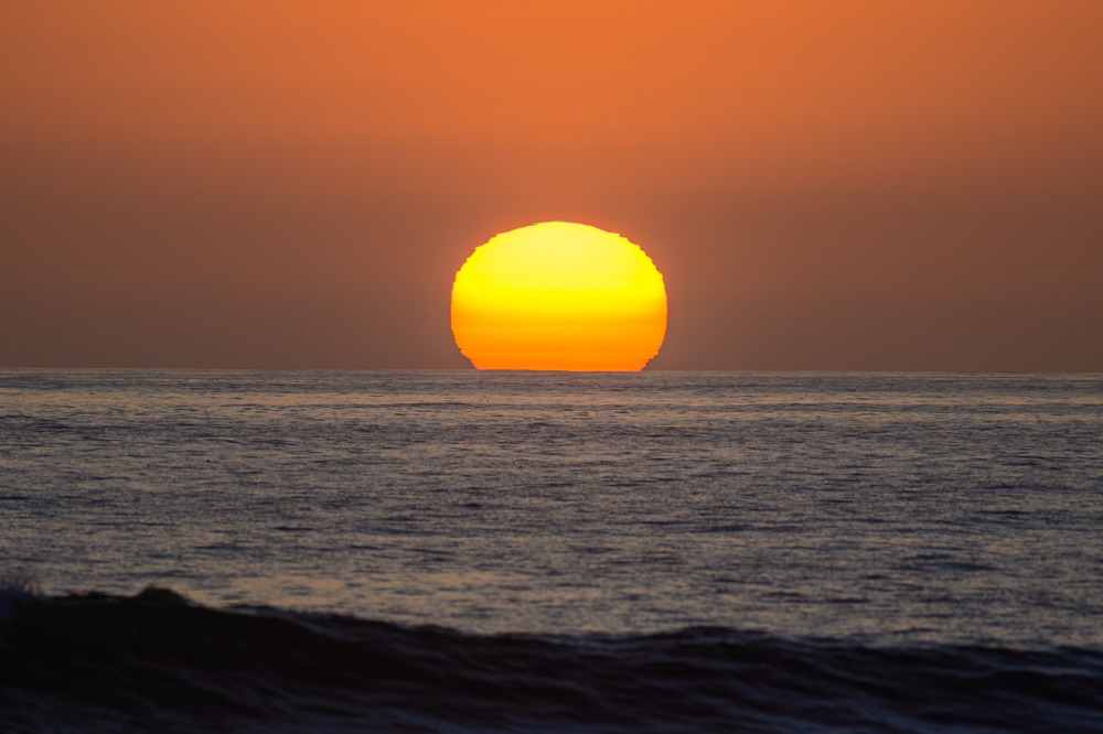 Dann ist es endlich soweit. Die Sonne berührt das Wasser und kurze Zeit später ist sie verschwunden.
