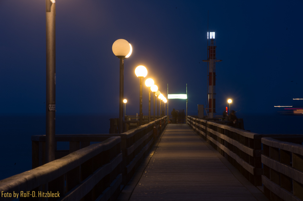 Logisch, dass auch da eine Seebrücke zur Grundausstattung gehört. Diesmal allerdings „nur“ bei Tageslicht. Aber die Lampen sind die gleichen wie in Wustrow gestern.
