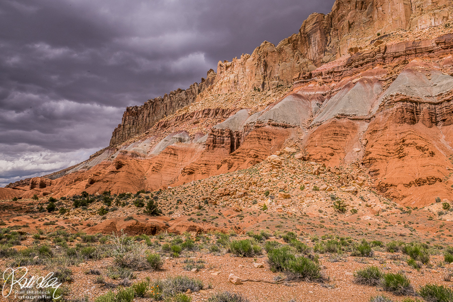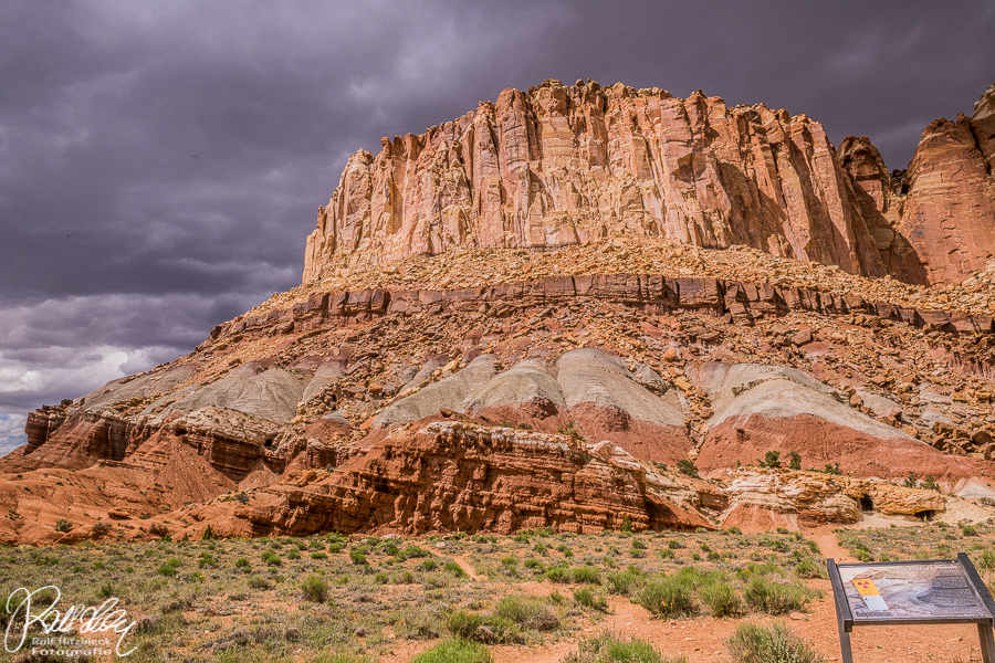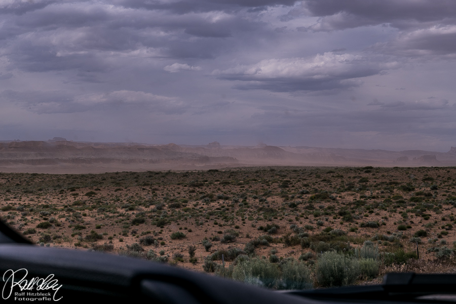Nördlich von Hanksville dann ein heftiger Sandsturm, zum Glück war der Wagen staubdicht und wir waren ausnahmsweise mit geschlossenen Fenstern unterwegs.