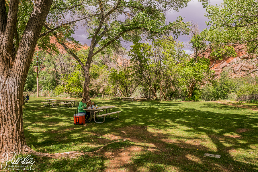 Deshalb ging es zurück nach Fruita, wo wir im Schatten der Bäume unser nachmittägliches Mahl vernichteten.