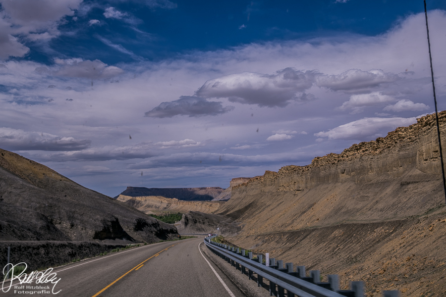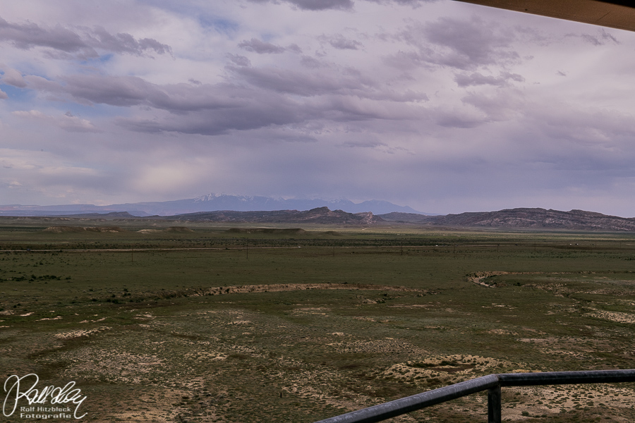 Auf dem weiteren Weg dann Einblicke in die San Rafael Swell, eine Gegend, die es sich irgendwann zu erkunden lohnt. Auf der anderen Seite die Manti La Sal Mountains, wolkenverhangen und schneebedeckt.