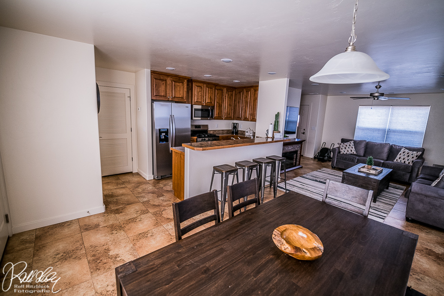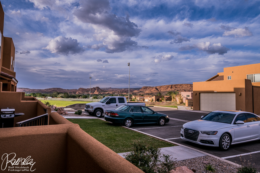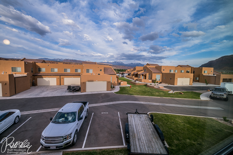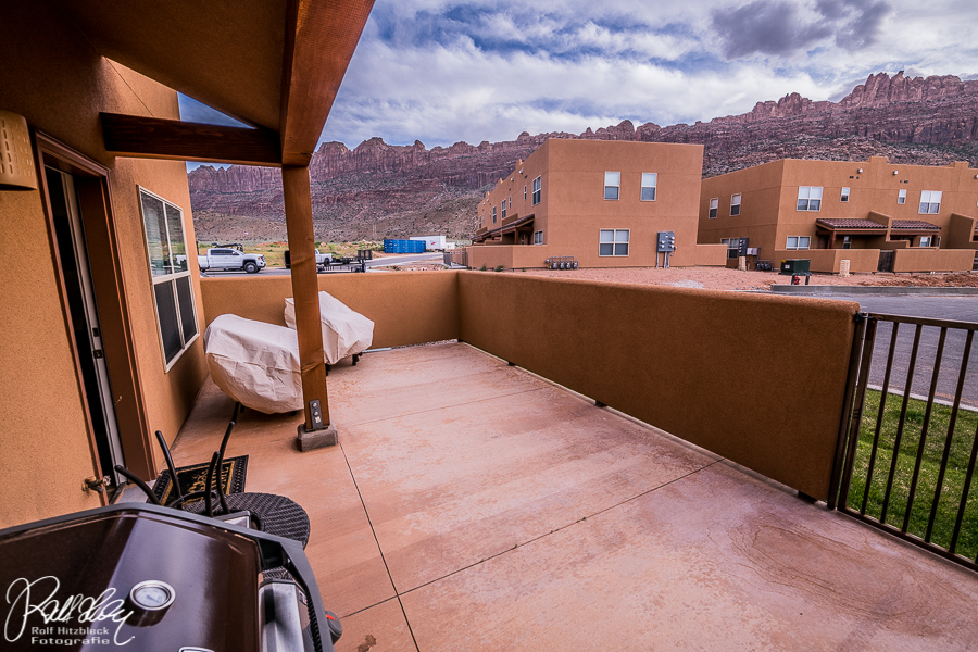 Dann ging es die 191 herunter nach Moab. Rechts die Stichstraße zu den Canyonlands, links grüßt der Arches National Park. Moab, das ist nach Hause kommen, nachdem wir mal 4 Wochen dort in einem Ferienhaus verbracht hatten. Im City Market erstmal Vorräte ergänzen und dann auf die Suche nach unserer Hütte machen. Die Wohngegend ist so neu, dass wir laut Google Maps im Nirgendwo übernachten. Zum Glück ist die Realität deutlich schöner. Im Adobestil ist es eines von vielen Häusern, welches wir gleich in Beschlag nehmen.