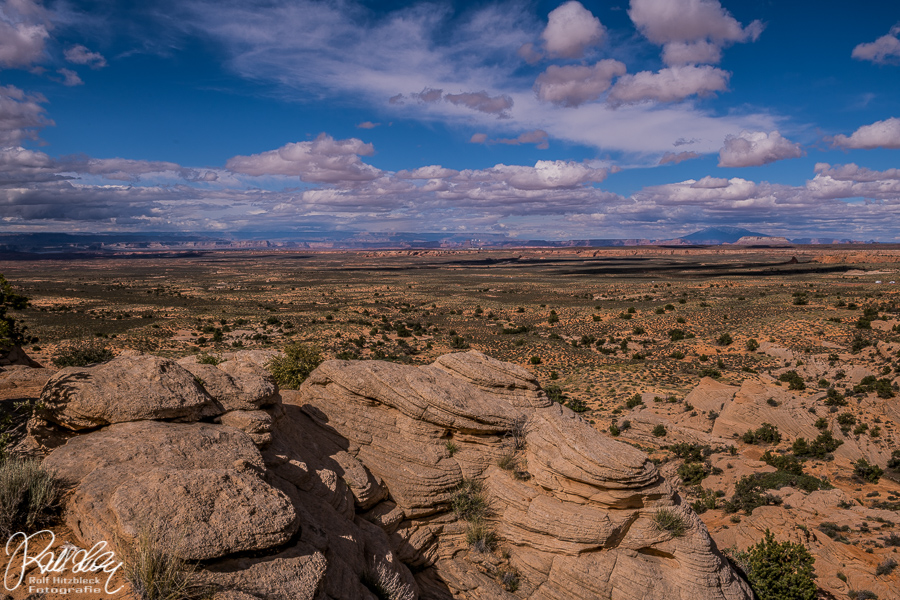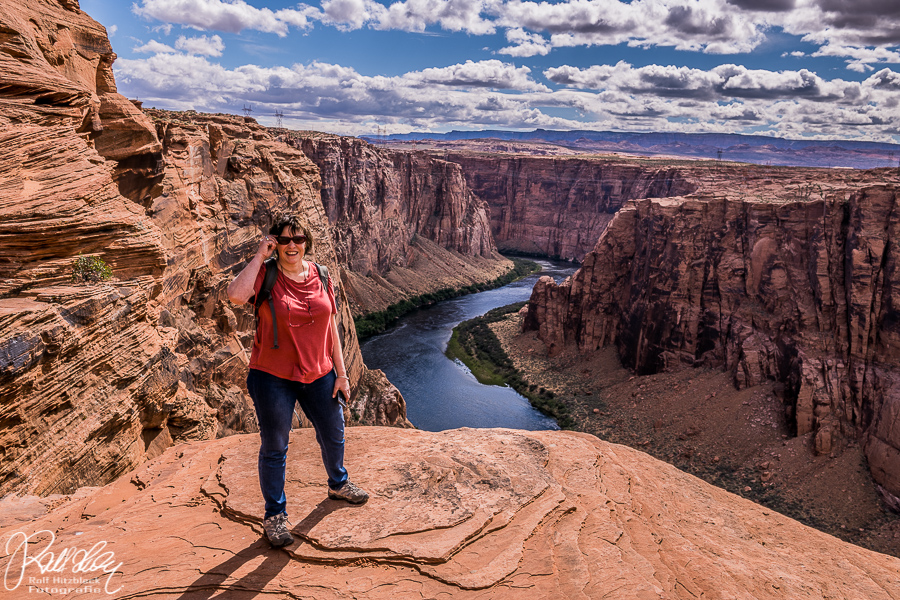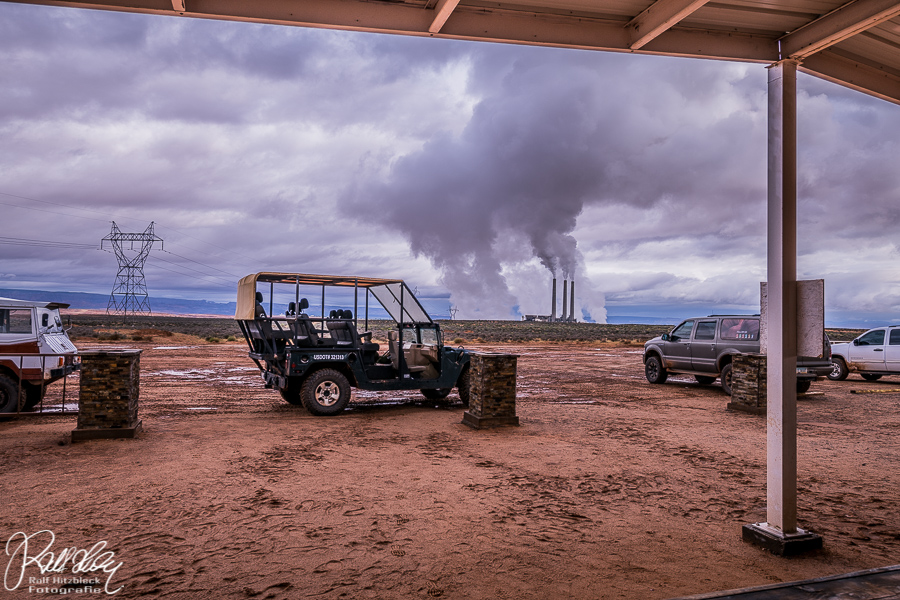 Wir hatten als offenen Punkt noch immer die Navajo Bridge und Lees Ferry. Auf dem Weg dorthin kamen wir in Page an einem Aussichtspunkt vorbei, den wir bisher noch nicht besichtigt hatten. Von einer schroffen Abrisskante hat man einen tollen Blick in das Colorado Tal und den Damm in der anderen Richtung.