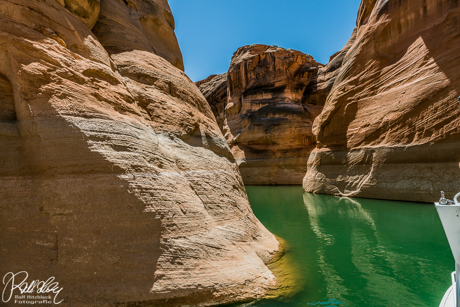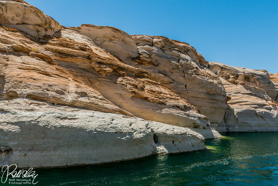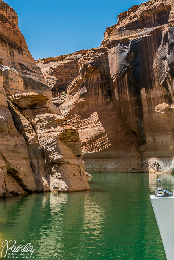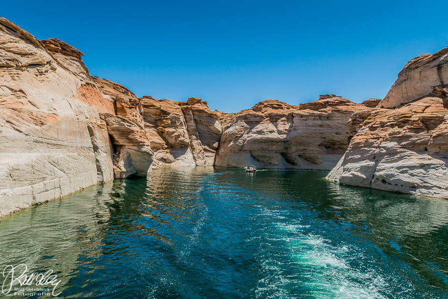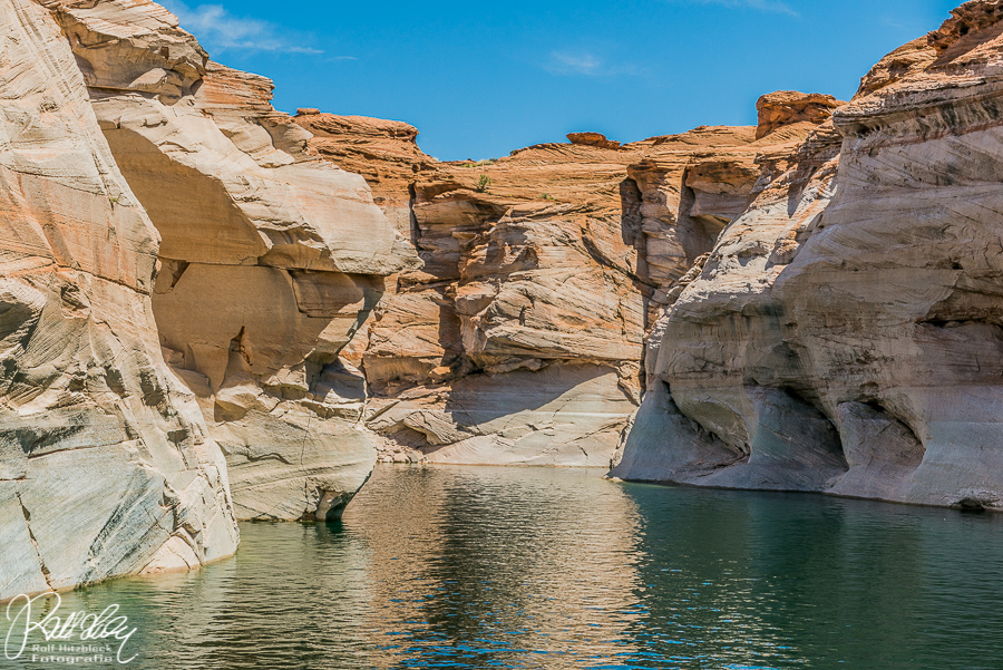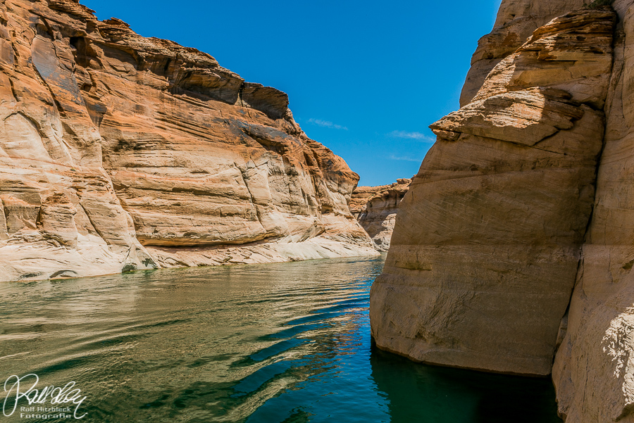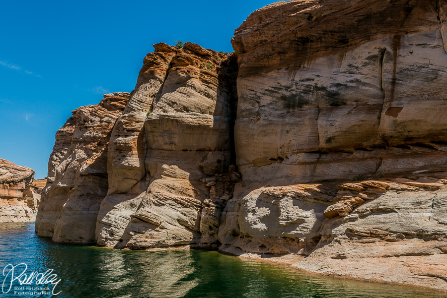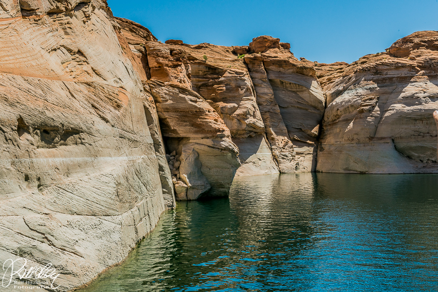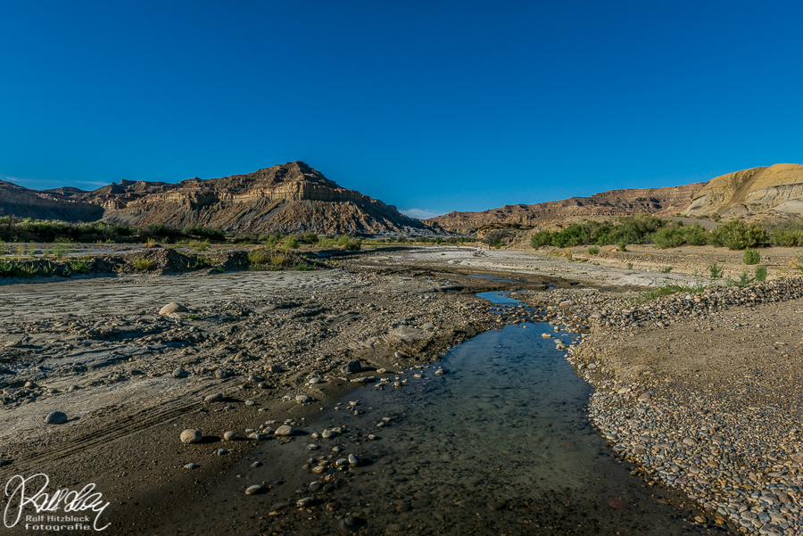 Unsere Sachen, speziell unsere Schuhe, wollten wir in dieser zähflüssigen, übelriechenden Masse nicht unbedingt einfärben, so dass wir umkehrten und in den Canyon des Paria River einbogen. Dieser war nicht ganz so spektakulär, bot aber an einer Stelle die Möglichkeit einer schönen Mittagspause im Schatten.