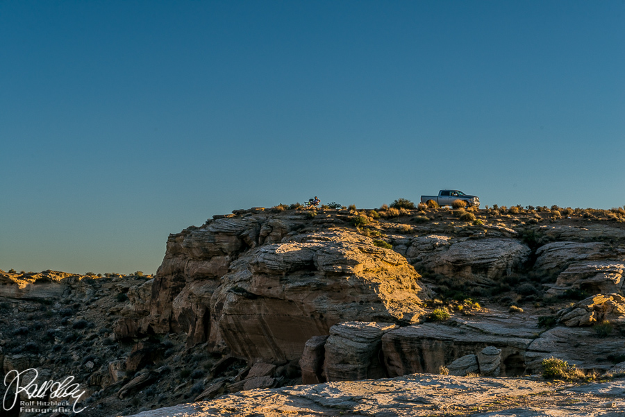 Danach erstmal gemütliches Frühstück und dann ging es los zur Houserock Valley Road. Diesmal ein wenig weiter als beim letzten Mal, bis zum Wire Pass Trailhead. Von dort aus beginnen zwei Wanderungen. Eine beginnt in den Bereich der Coyote Butte North (wofür wir bisher kein Permit ergattern konnten) und in den engen Teil des Canyons des Buckskin Gulch.