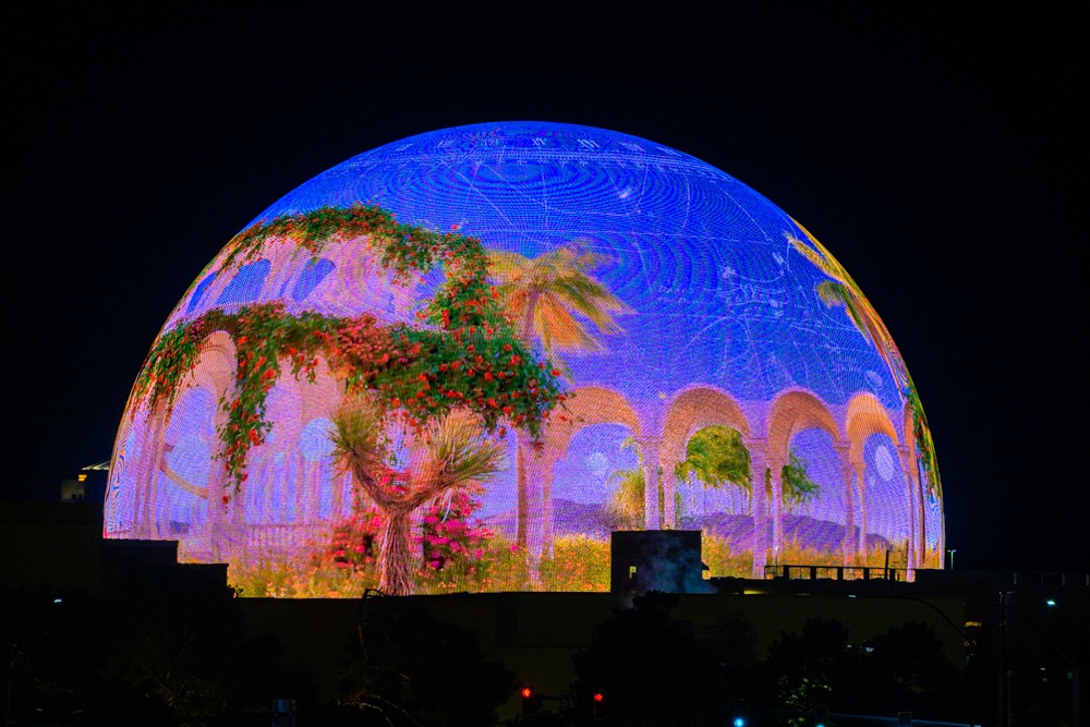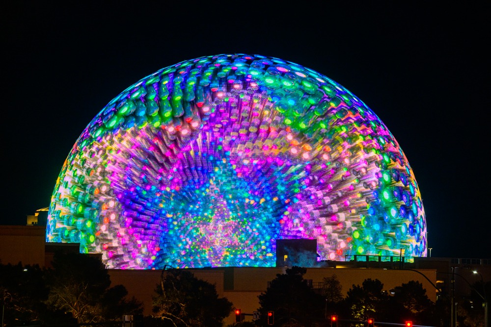 Laut Wikipedia hat das Gebilde einen Durchmesser von 157 Metern und eine Außenfläche von 81.300 m². Diese ist mit 57,6 Millionen LEDs bestückt, eine faszinierende Anlage. Die Baukosten betrugen über 2 Milliarden USD und zur Zeit fährt die Anlage rote Zahlen.